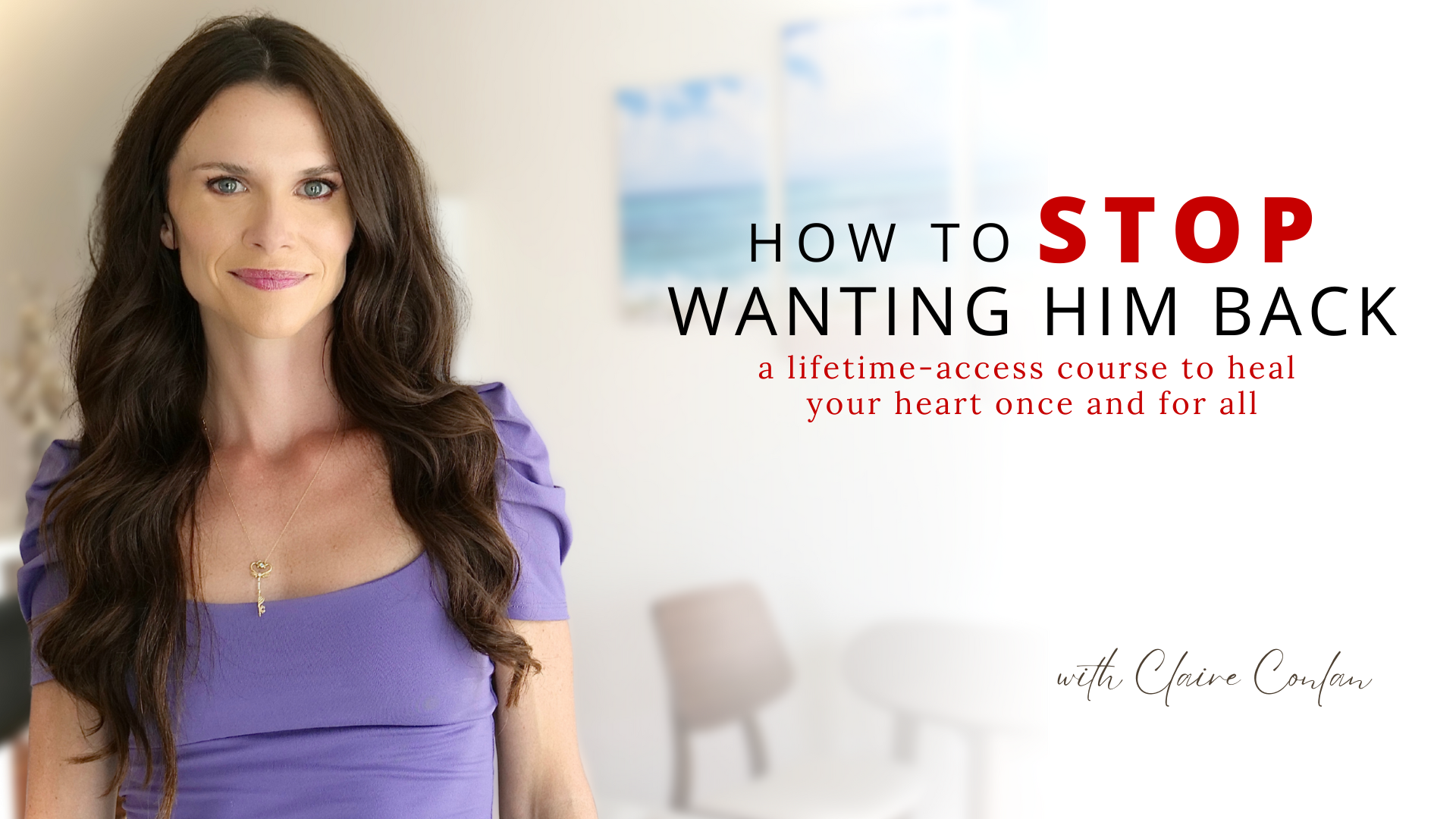 "To say that this course transformed my life is an understatement. Claire is kind, warm, open, intuitive and sharp to the point that I think she may actually be psychic. She will teach you how to manage your thoughts, AND teach you how to plow through them in a different direction, in order to heal your heart."